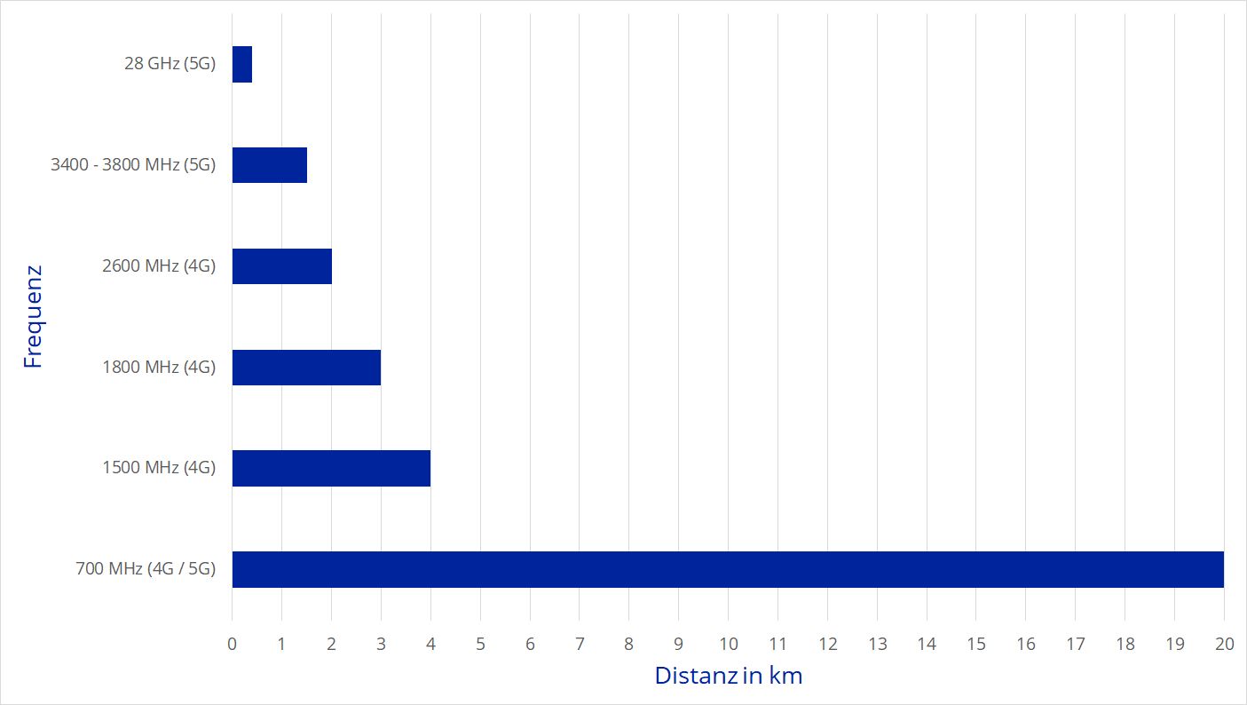 Mit den kommenden neu geplanten 5G-Frequenzbereichen, sind die Übertragungsbereiche durch die höheren Frequenzen kürzer, was eine Anhäufung von Senderstationen in den Agglomerationen bedingt.