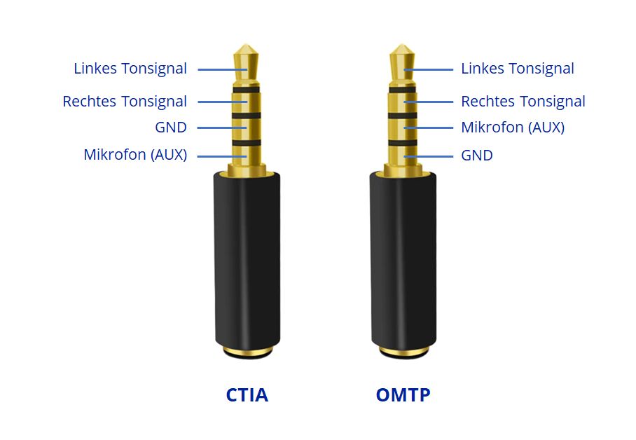 Klinkenstecker ist nicht gleich Klinkenstecker? Was viele nicht wissen, ist, dass es zwei verschiedene Standards für Klinkenstecker gibt. Cellular Telecommunications Industry Association (CTIA) und Open Mobile Terminal Platform (OMTP). Der Ton bereitet meist keine Probleme, aber das Headset-Mikrofon versagt seinen Dienst oder die Fernbedienung zur Steuerung funktioniert nicht.