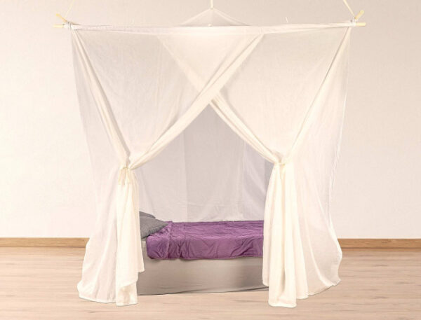 Für Anwendung in mehrstöckigen Häusern mit Strahlen von unten muss unbedingt die Baldachin Unterlage, Artikel 08-300210 (195 x 260cm) dazu verwendet werden, damit wirklich der umfassende Schutz gewährleistet ist.