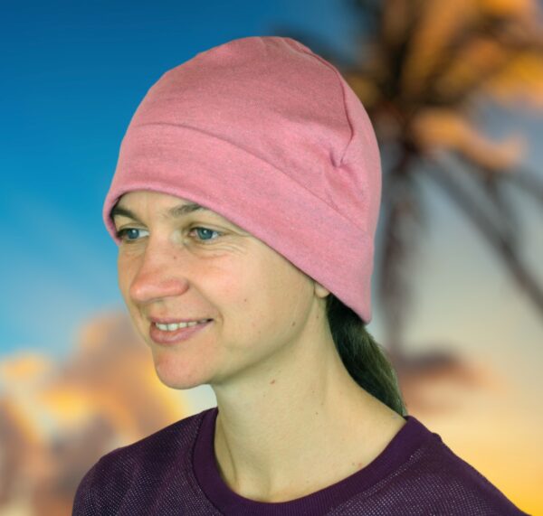 Wunderbar weiche, anschmiegsame, perfekt schützende Mütze aus Bio-Baumwolle Sweat Shirt Stoff.
