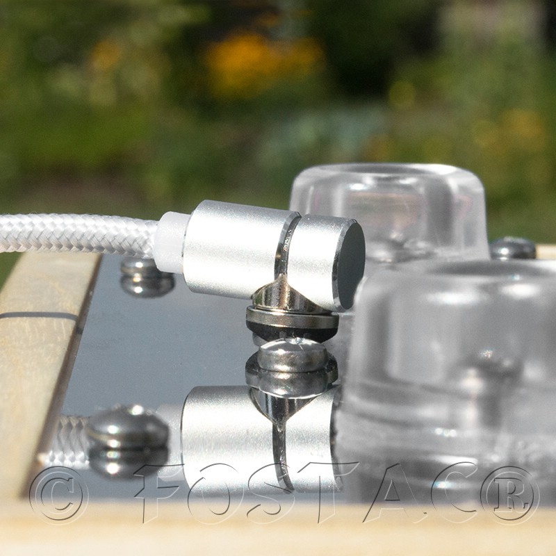 Material/Art: Hartholz-Gehäuse, Edelstahl-Platten und elektronische Komponenten im Innern