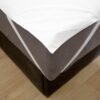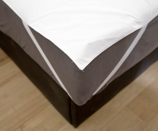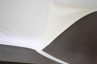 Um den empfindlichen Schutzstoff zu schützen und nicht zu viel waschen zu müssen, empfehlen wir, darüber nochmals ein normales Spannbetttuch zu verwenden.