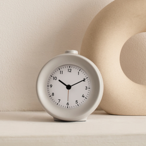 Das Zifferblatt verbindet minimalistisches Design mit hervorragender Lesbarkeit. Elegante Stundenmarkierungen auf einer klaren Oberfläche erleichtern das genaue Ablesen der Uhrzeit und das präzise Einstellen des Weckzeitpunkts.