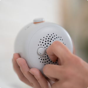 Aktivieren Sie den lichtunterstützten Alarm, indem Sie den Knopf mindestens zwei Sekunden lang gedrückt halten. Wenn der Alarm ertönt, wird das weiche, warme Licht langsam heller – für ein angenehmes Erwachen.